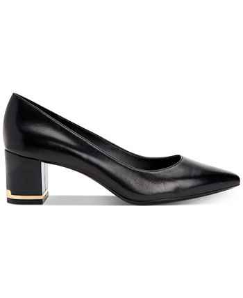 Calvin Klein Women's Nita Block Heel Pump In Black Leather Size 7 M