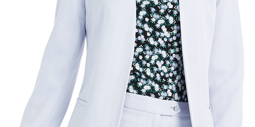 Approx. length: 33" from center back to hem|Stand collar; open front|Slit at back hem; shoulder pads|Welt pockets at hips