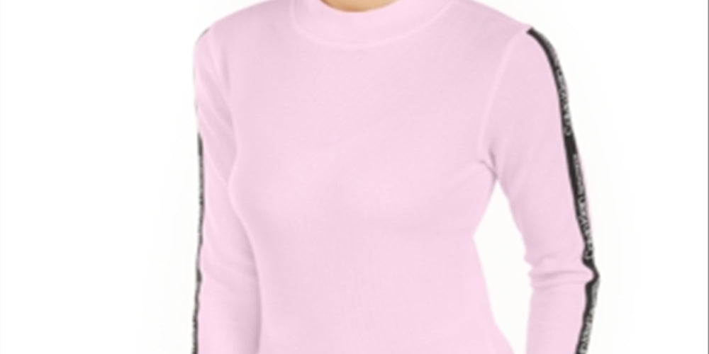 Calvin Klein Women's Performance Logo Stripe Mock Neck T-Shirt Pink Size X-Small