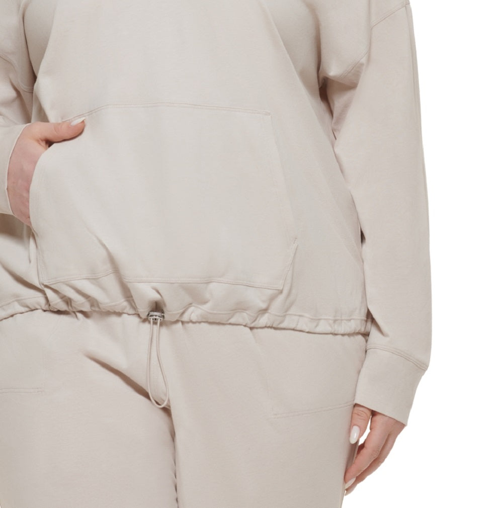 Take to the streets after hitting the gym in this essential workout hoodie from Calvin Klein; featured with a drawstring at the hem for a customizable fit.| Approx. 26-1/2 long; drop shoulders | Attached hood; kangaroo pocket at front; drawcord at hem| All cotton| Machine washable| Imported