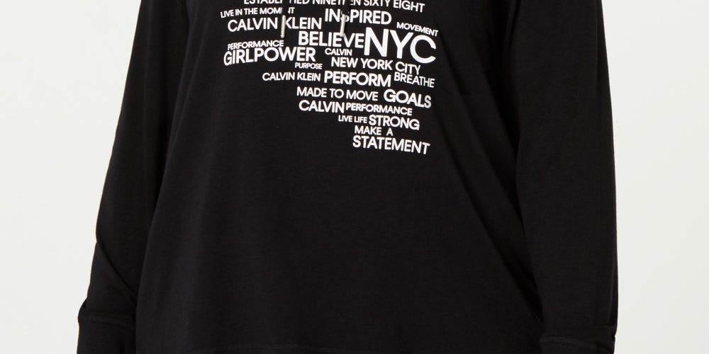 Calvin Klein Women's Performance Plus Size Logo Hoodie T Shirt Black Size 1X