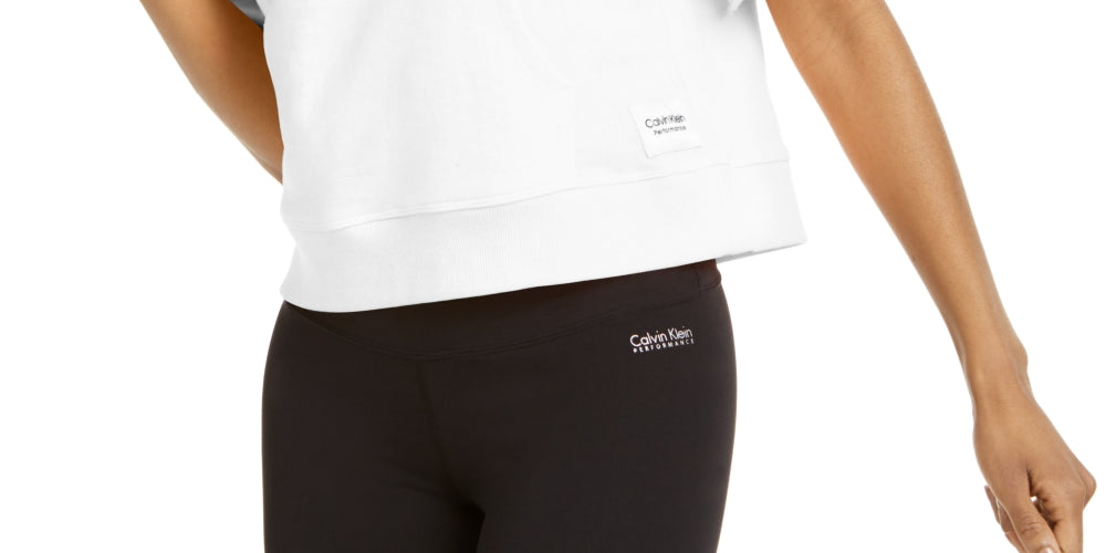 Calvin Klein Women's Performance Quarter-Zip Cropped Hoodie White Size X-Large