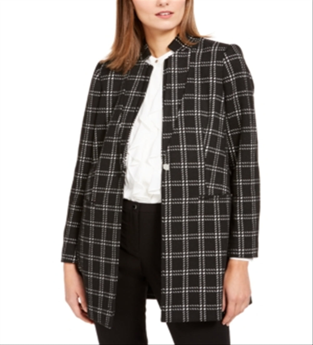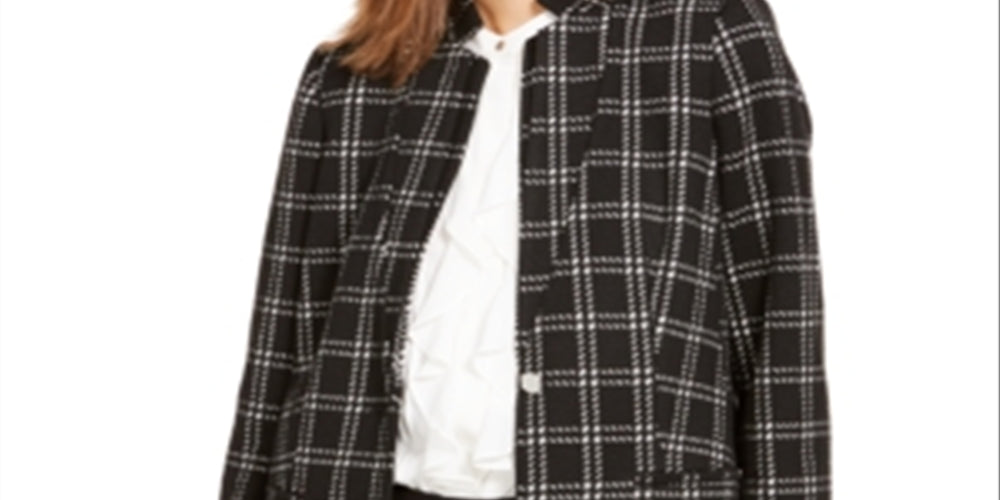 Calvin Klein Women's Plaid Button Topper Jacket Black Size 2