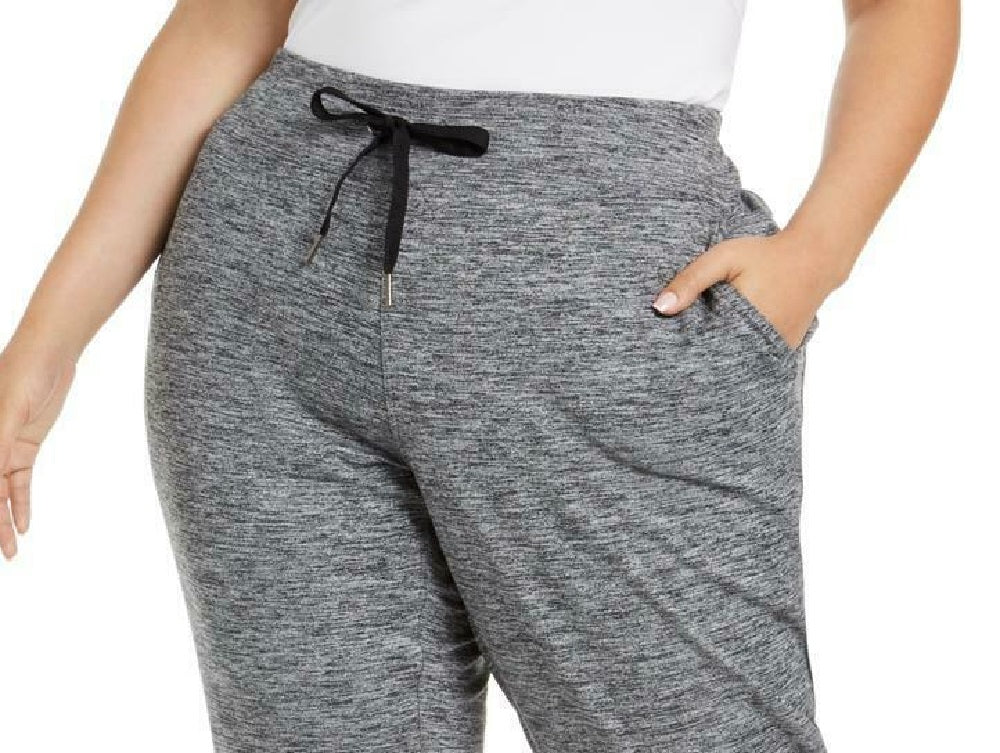Imported | Mid rise | Pockets at hips | Pull-on style | Ribbed trim at waist and hems; tonal logo at hip | Approx. inseam: 28" | Cotton/polyester | Machine washable
