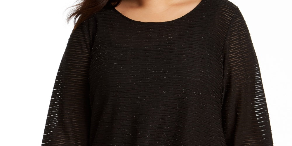 Calvin Klein Women's Plus Size Metallic Wavy Knit Asymmetrical-Hem Top Black Size 2X