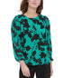 Calvin Klein Women's Printed Smocked Shoulder Blouse Green Size Medium