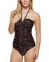 Calvin Klein Women's Printed V Wire Bandeau Halter Tankini Top Swimsuit Black Size Large