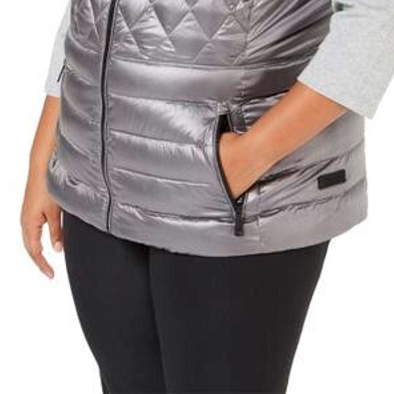 Calvin Klein Women's Quilted Metallic Down Vest Black Size 3X