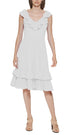 Gorgeous ruffles frame the neckline and hemline on this pretty A-line dress from Calvin Klein.| Approx. 24 long from center back to hem. Length is based on size 6 and varies 1/4 between sizes| Fitted through the chest and waist; structured A-line skirt sits slightly over hips| Chiffon; Smooth| sheer woven fabric| Ruffled V-neck; A-line silhouette| Back zipper closure