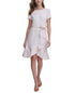 Round neckline|Detachable matching tie sash at waist; tulip hemline with ruffled flounce|Exposed gold-tone zipper closure at center back|Imported|Unlined|Connect with a stylist & get free expert advice online or in stores for your wardrobe| home & more. Book Now