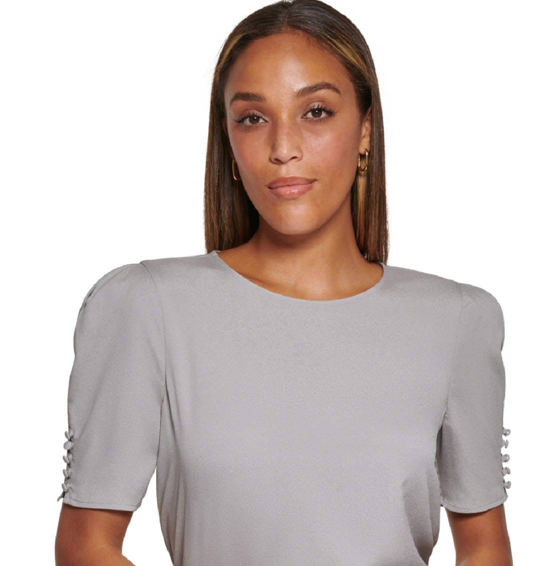 Calvin Klein Women's Scoop Neck Button Detail Blouse Gray Size Medium