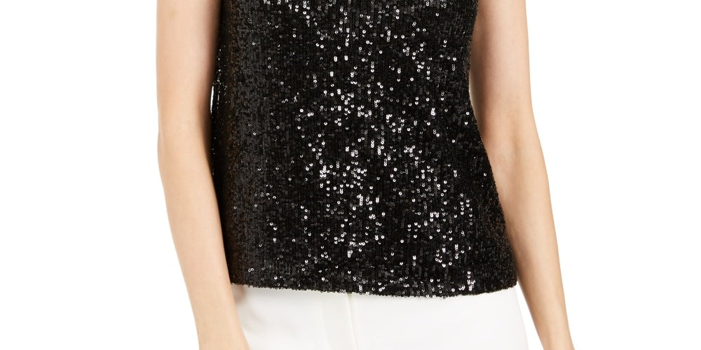 Calvin Klein Women's Sequin Mock Neck Keyhole Top Black Size Medium