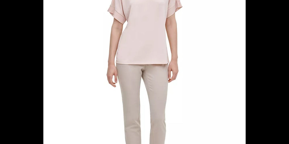 Hits at hip; approx. 25 long|Crewneck|Tonal trim detail at sleeves|Shell; polyester/spandex; lining; polyester|Hand wash