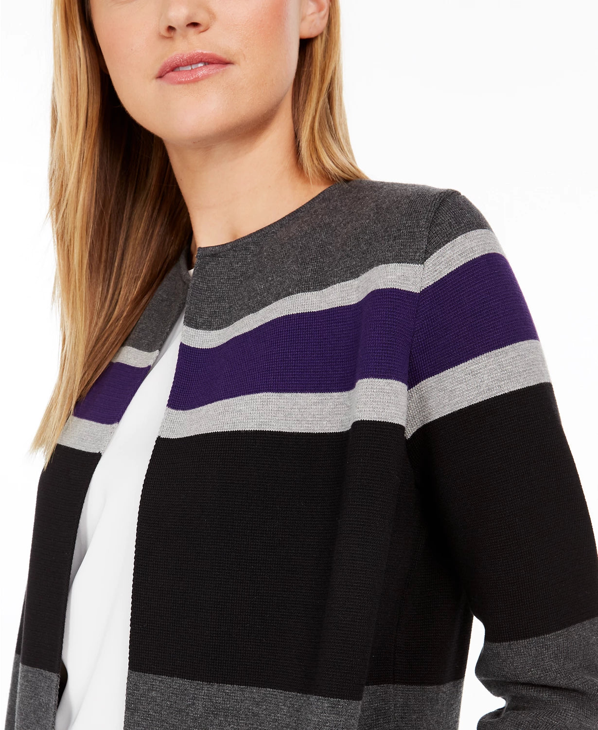 Calvin Klein Women's Striped Open-Front Cardigan Gray Size Large