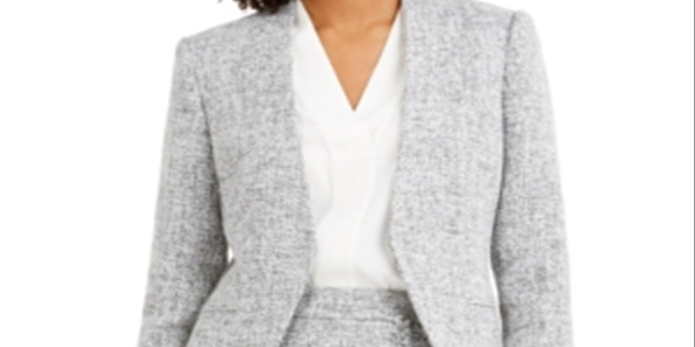 Calvin Klein Women's Tweed Open Front Blazer Gray Size 4