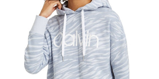Calvin Klein Women's Zebra-Print Logo Hoodie Blue Size X-Large