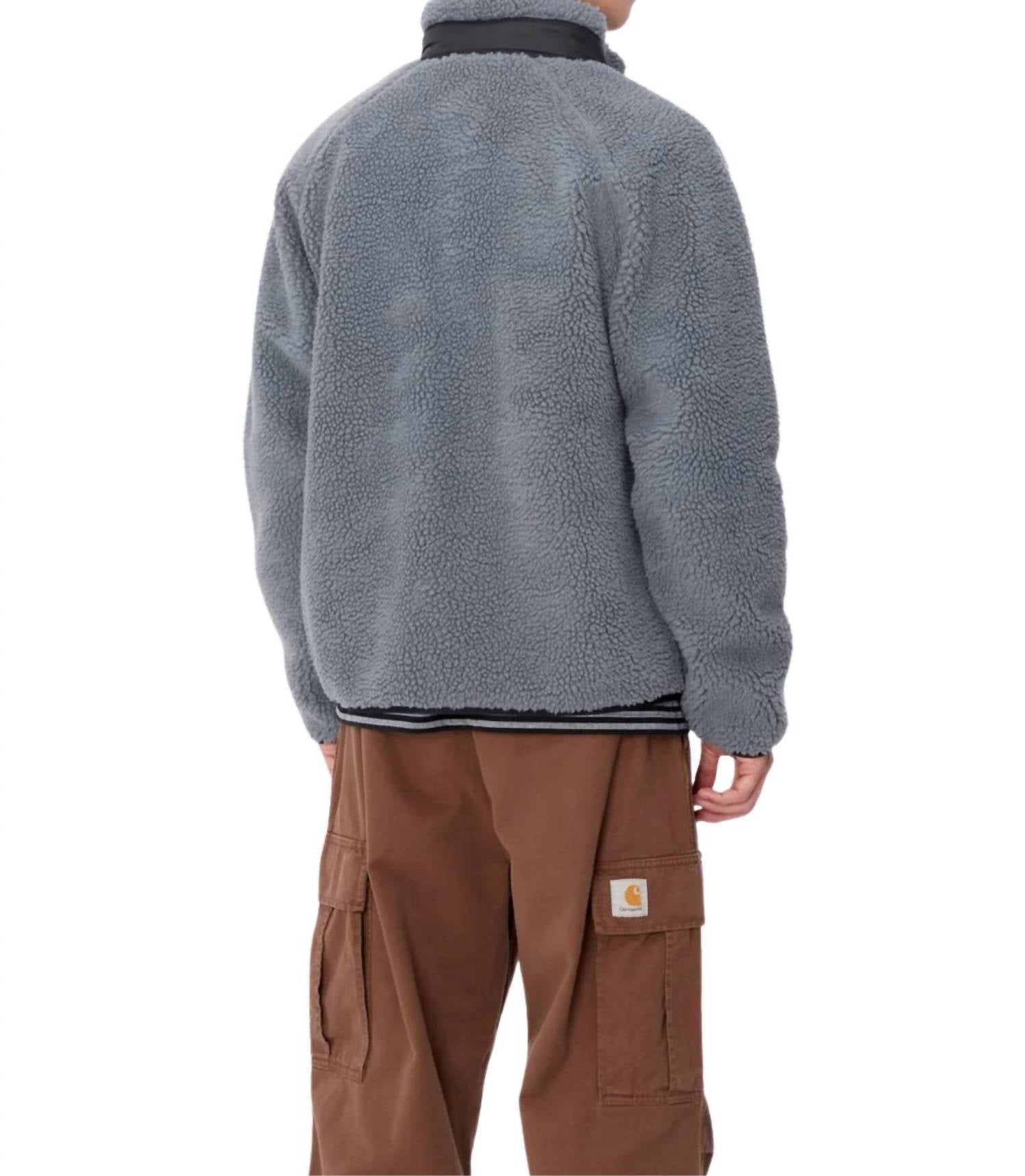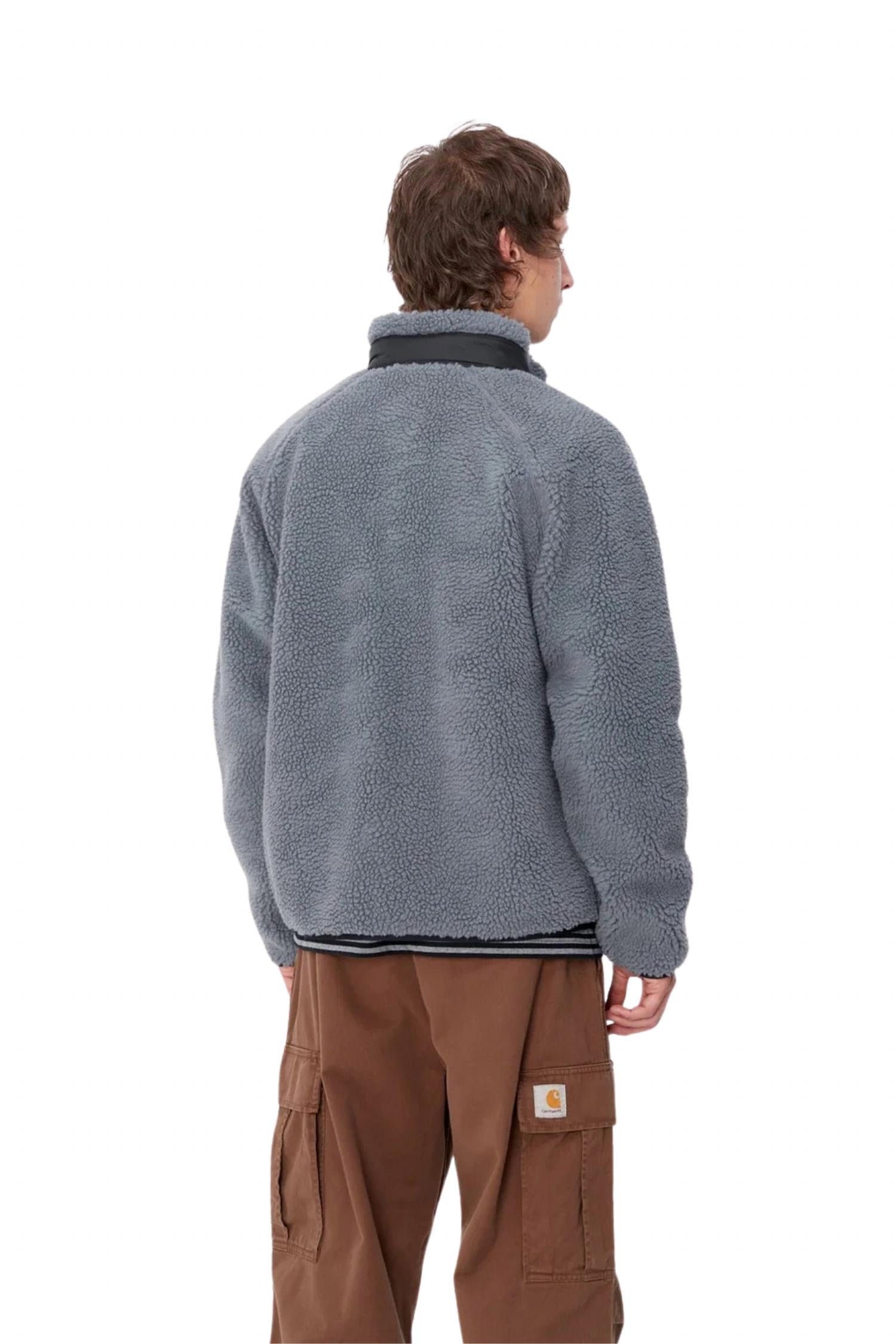 Introducing the Prentis Liner Fleece by Carhartt WIP, crafted in stylish Dove Grey for men's attire. This jacket features long sleeves and a cozy lined design, with 100% polyester composition ensuring durability and comfort. Equipped with a practical zipper closure and a collar neckline, it seamlessly blends functionality with fashion. Care is simple with machine washability for easy maintenance.