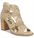 Intricate texturing| with knotted effects and airy flair| creates the bold boho vibe of the Nadia dress sandals from Carlos by Carlos Santana.| 3-1/2 block heel| Round-toe dress sandals with back zipper closure | Woven texturing; knotted detail| Fabric upper; manmade sole