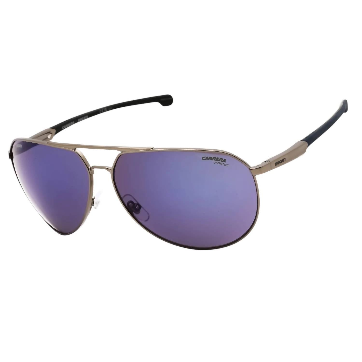 Experience timeless style with the men's 030/S sunglasses by Carrera, offering a classic aviator frame crafted from durable metal. These sunglasses exemplify both fashion and comfort, with dimensions designed for a perfect fit: eye size of 67mm, bridge size of 13mm, and temples measuring 130mm. The striking matte dark ruthenium blue paired with blue sky SP lenses adds an edge to any outfit.