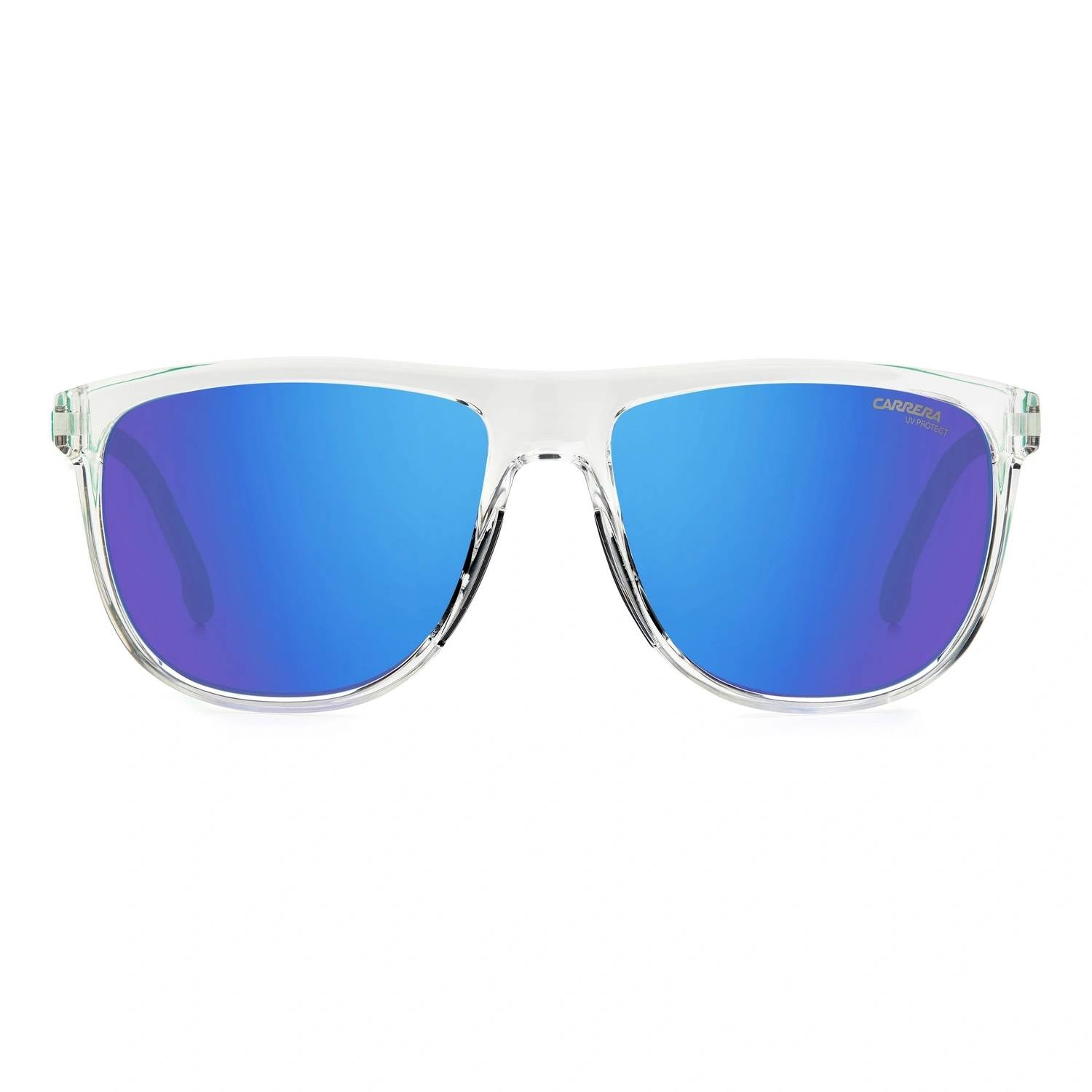 Introducing MEN'S 8059/S SUNGLASSES by Carrera, where sleek design meets timeless style. Crafted with a plastic frame and polycarbonate lenses, these sunglasses boast a sophisticated crystal green hue. The rectangular shape is complemented by a bridge of 16 and rods measuring 145, offering comfort and durability. Lens dimensions are 58 in length and 46.5 in height, with a base 6 spherical for optimal visual clarity.