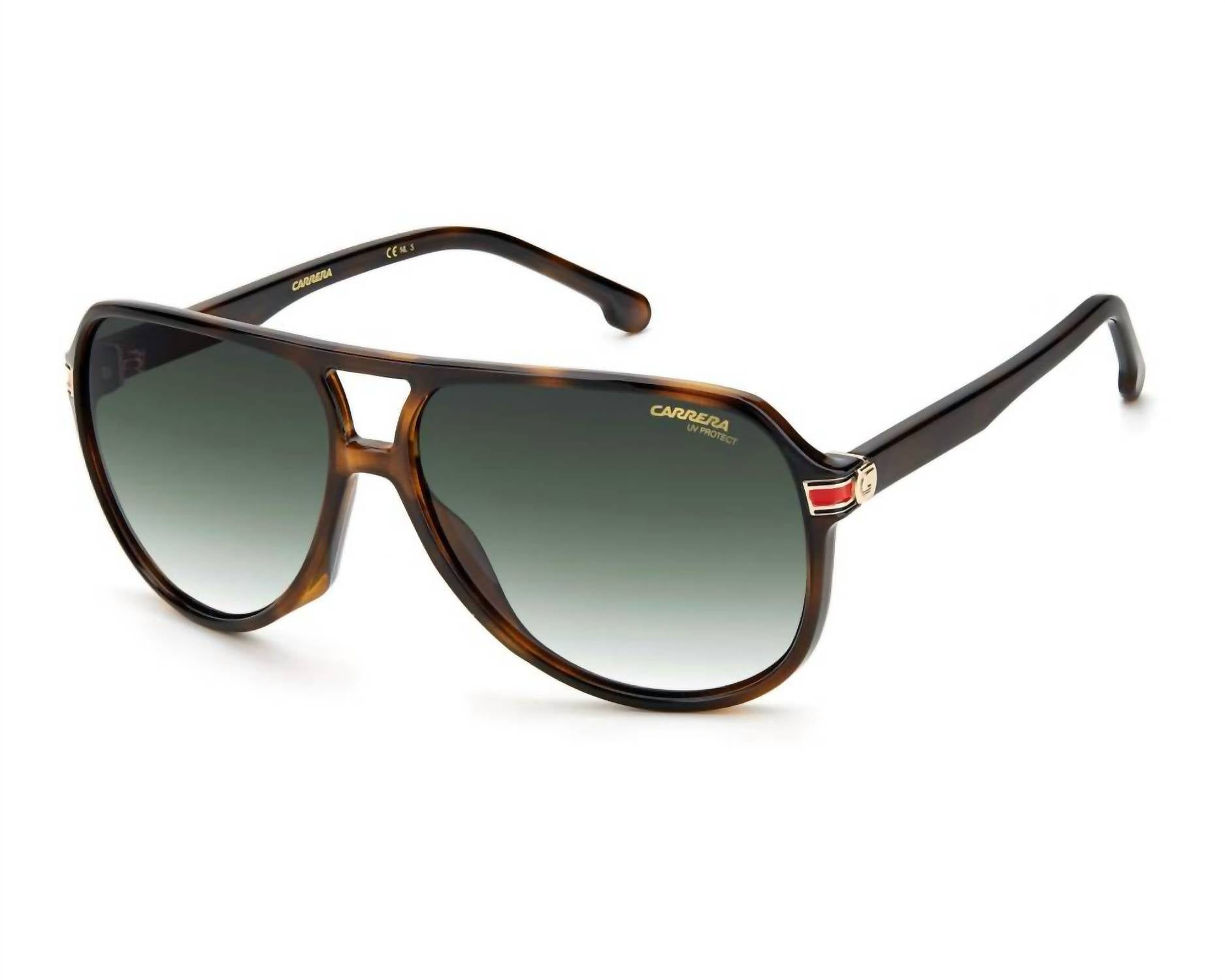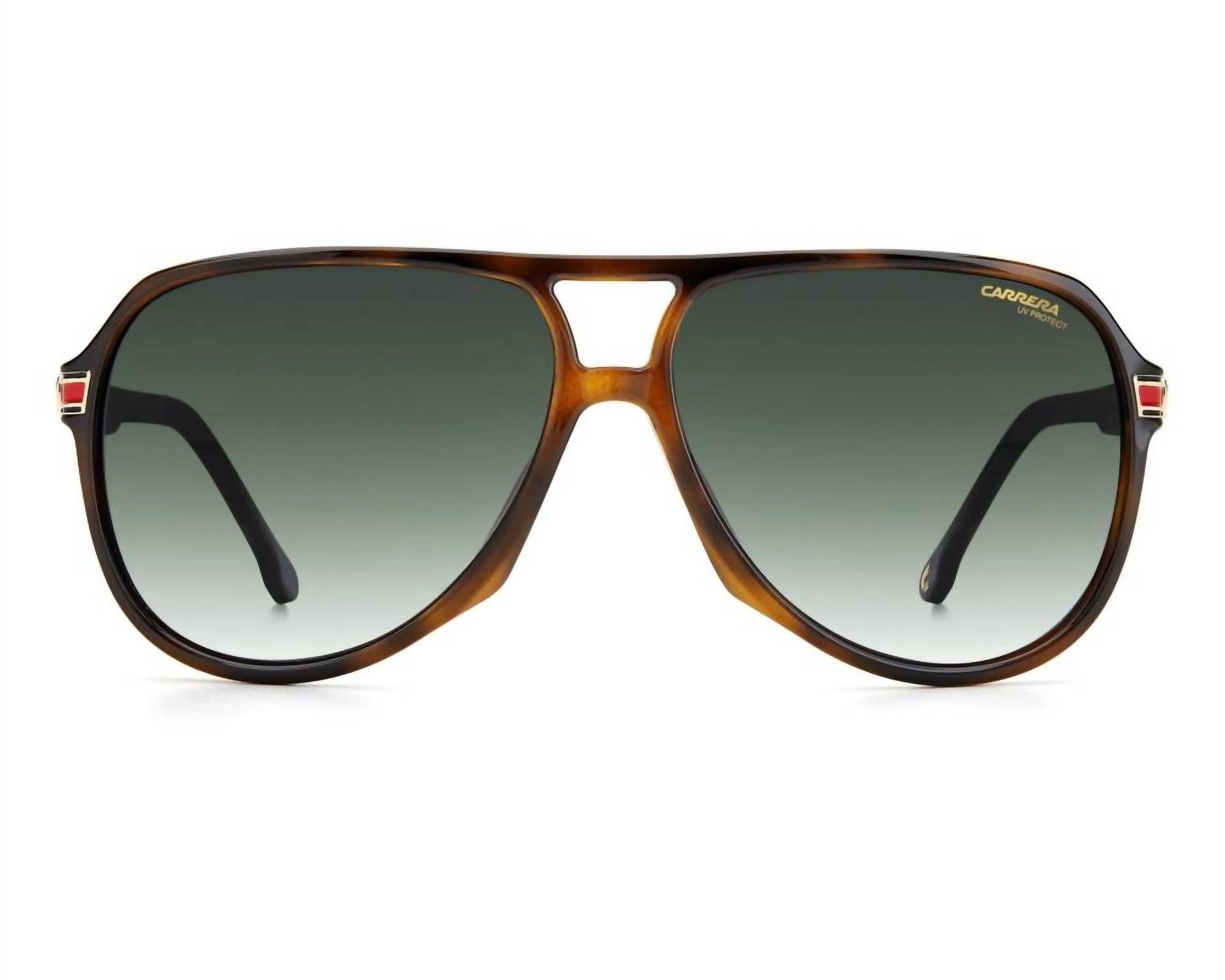 Introducing the UNISEX 1045/S Sunglasses by Carrera, a perfect blend of iconic design and modern style. These sunglasses feature a classic aviator frame crafted from durable plastic, ensuring they are both lightweight and sturdy. With full rim construction, these sunglasses measure 61 mm in lens width, 13 mm in bridge size, and 140 mm in temple length. The HAVANA/GREEN SHADED color adds a touch of sophistication, making them an essential accessory for any fashion-forward individual.