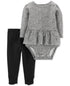 Fun ruffle trim at the waist highlight the long-sleeve leopard-print bodysuit of this cotton set from Carter's finished with bow detail leggings.| Bodysuit; snaps at bottom and shoulder; ruffle trim at waist| Pants; elastic waistband; cut out at ankle with bow detail| Bodysuit/pants; 100% cotton| Machine washable| Imported