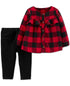 Carter's Girls' Casual Pants Plaid Buffalo Plaid Ruffle-Trim Tunic & Velour Leggings Red Size 9 Months