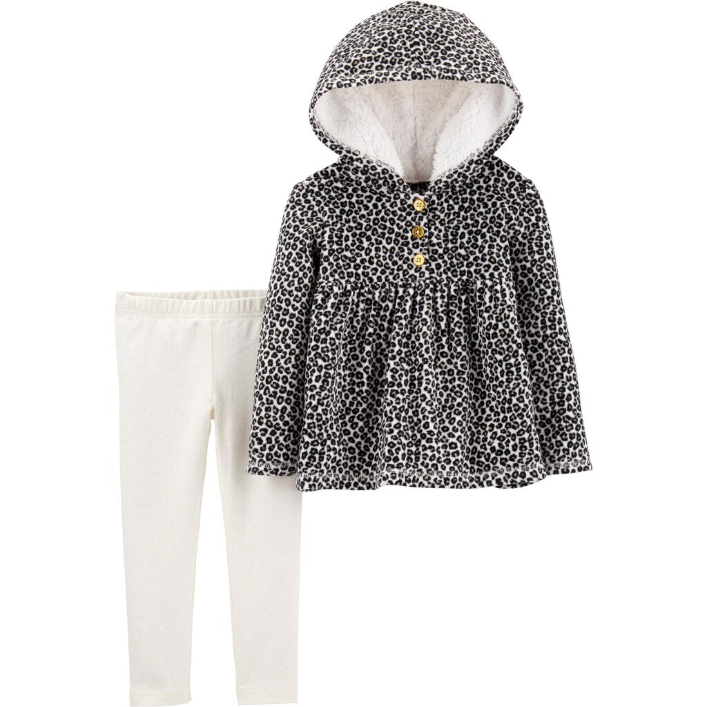 Carter's Toddler Girl's 2 Pc Animal Print Hoodie & Leggings Set Black White Size 5T