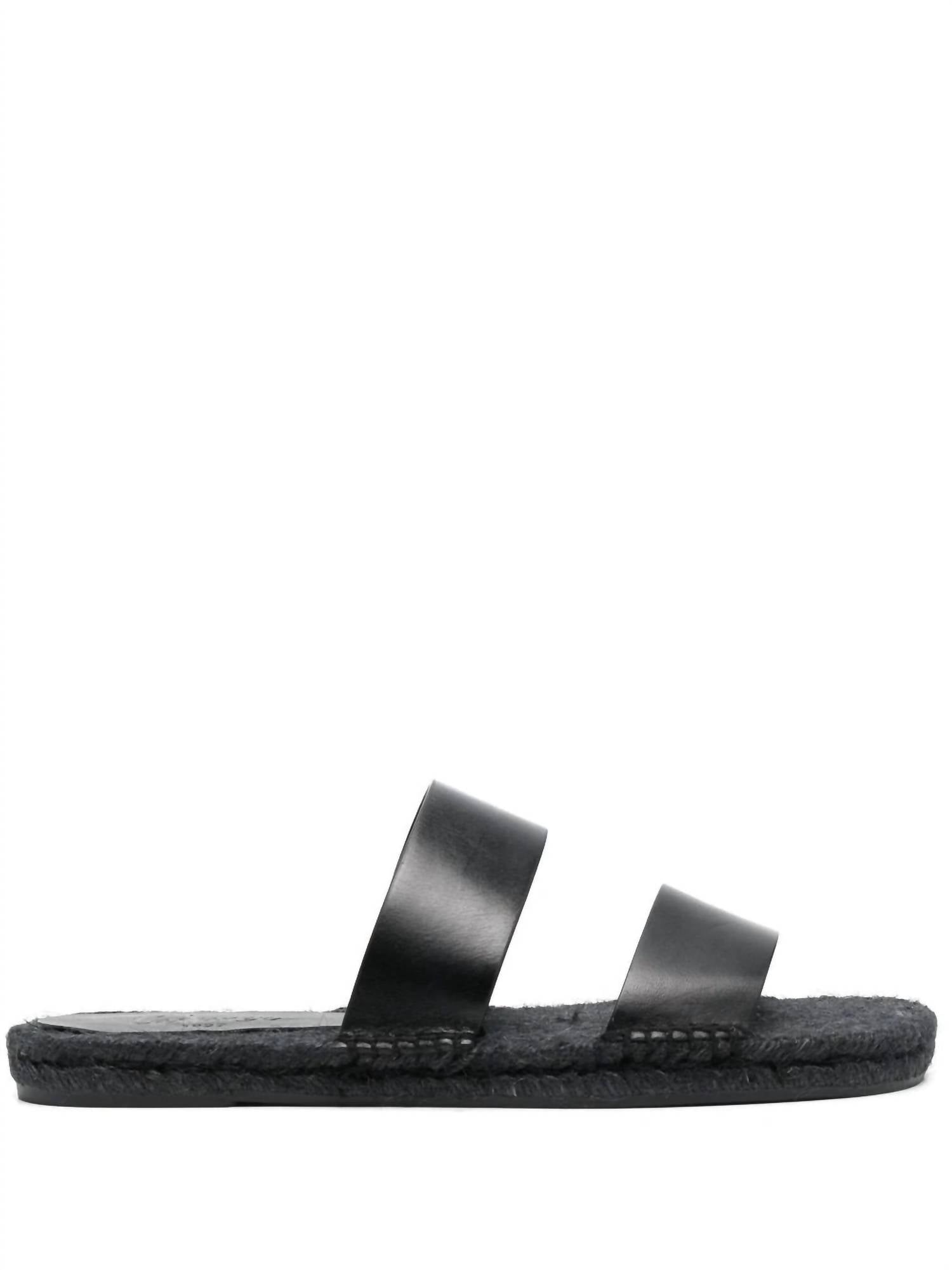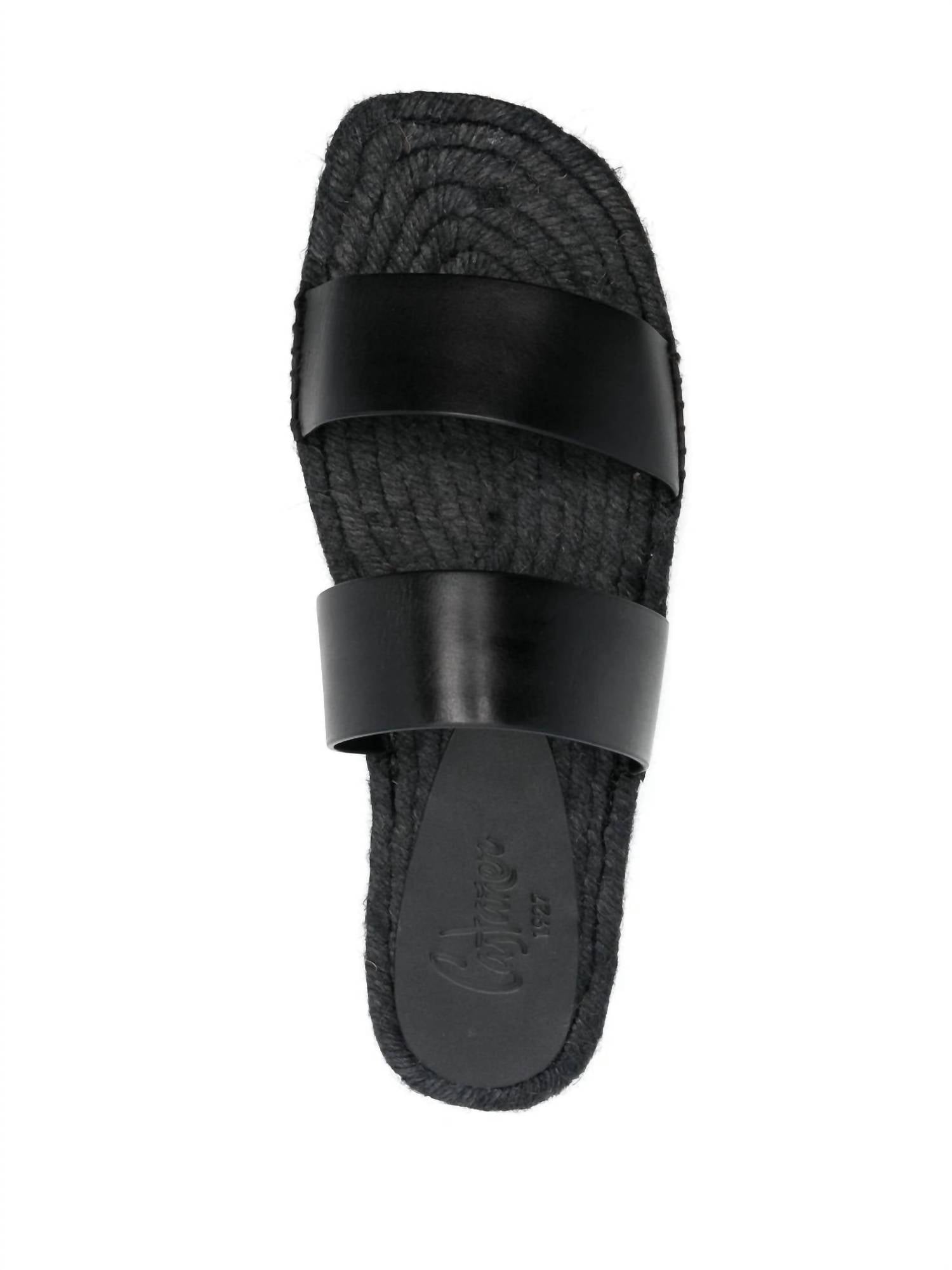 Introducing the Men's Kim Leather Slip On Sandal by Castaner in elegant Negro. Crafted from premium leather, this sandal is perfect for summer travels or New Year's Eve occasions. Designed in a vintage trend with a flat heel and round toe shape, it offers both style and comfort for men. Note: The care guide recommends cleaning with a dry cotton cloth and avoiding washing, ironing, and dry cleaning.