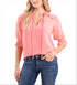 CeCe Women's Clip Dot Tie Front Top Pink Size Large