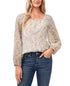 CeCe Women's Garden Muses Floral Square Neck Long Sleeve Top Green Floral Size Large
