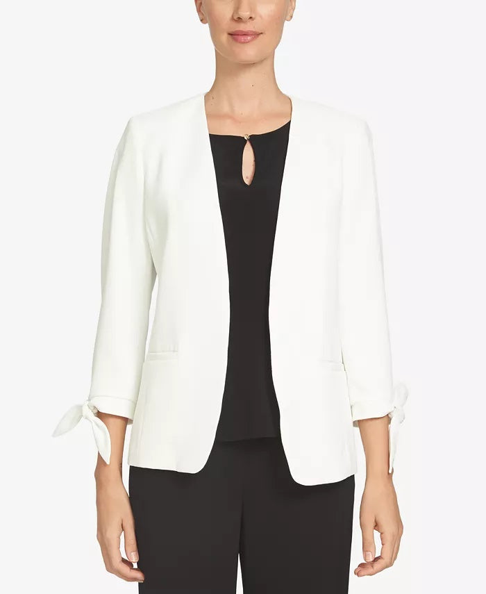 CeCe Women's Open Front Tie Sleeve Blazer White Size 4