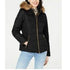 Approx. 25" long from center back to hem|Stand collar with hood and faux-fur trim (not removable); front zipper closure|Water resistant; faux-leather trim|Two pockets at front|Lined|Shell, lining, fill: polyester; faux leather: polyurethane; faux fur: acrylic/modacrylic/polyester