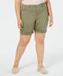 Approx. inseam: 8"|High rise: approx. 12"; leg opening: 24"|Front zipper and button closure; belt loops|Sewn rolled cuffs with frayed hem|Please note: size 18W is equivalent to size 18. The tag on this item will read 18. This is consistent for all available sizes.|Cotton/polyester/spandex