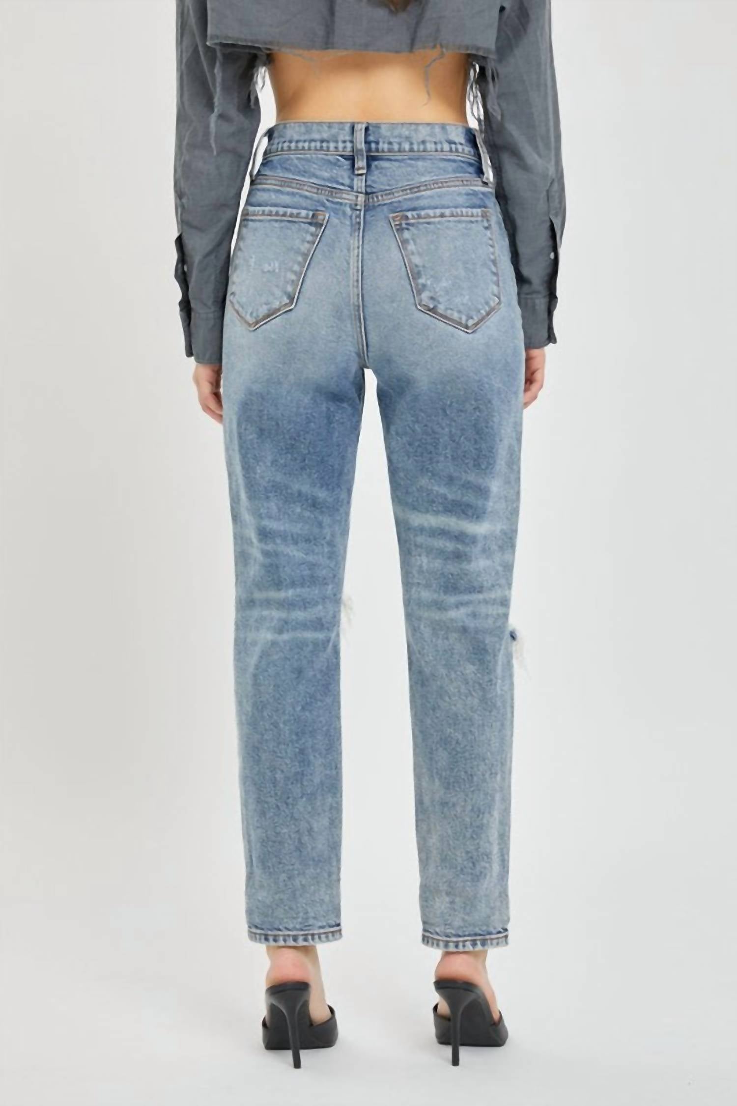 This Jean is made from 99% cotton and 1% spandex for comfort and a hint of stretch. Featuring a high-rise waist and mom jean fit, they offer a flattering silhouette with a tapered leg. The 28” inseam and 11.5” rise ensure a comfortable fit. Functional pockets and a button closure add practicality. Perfect for a casual chic look.