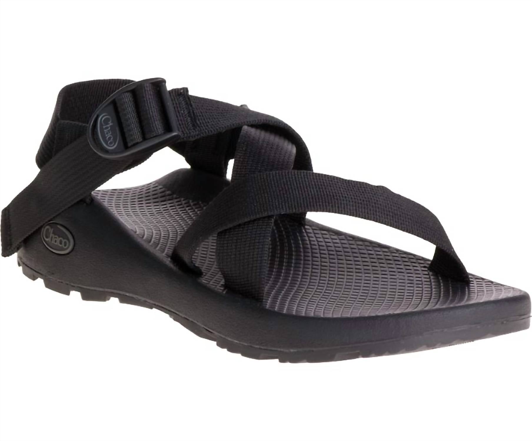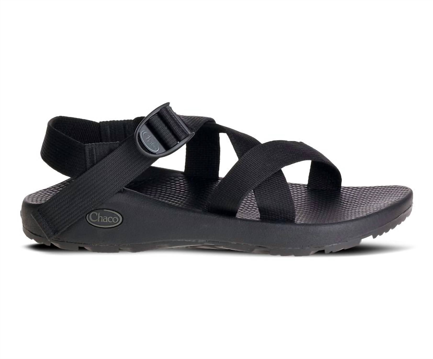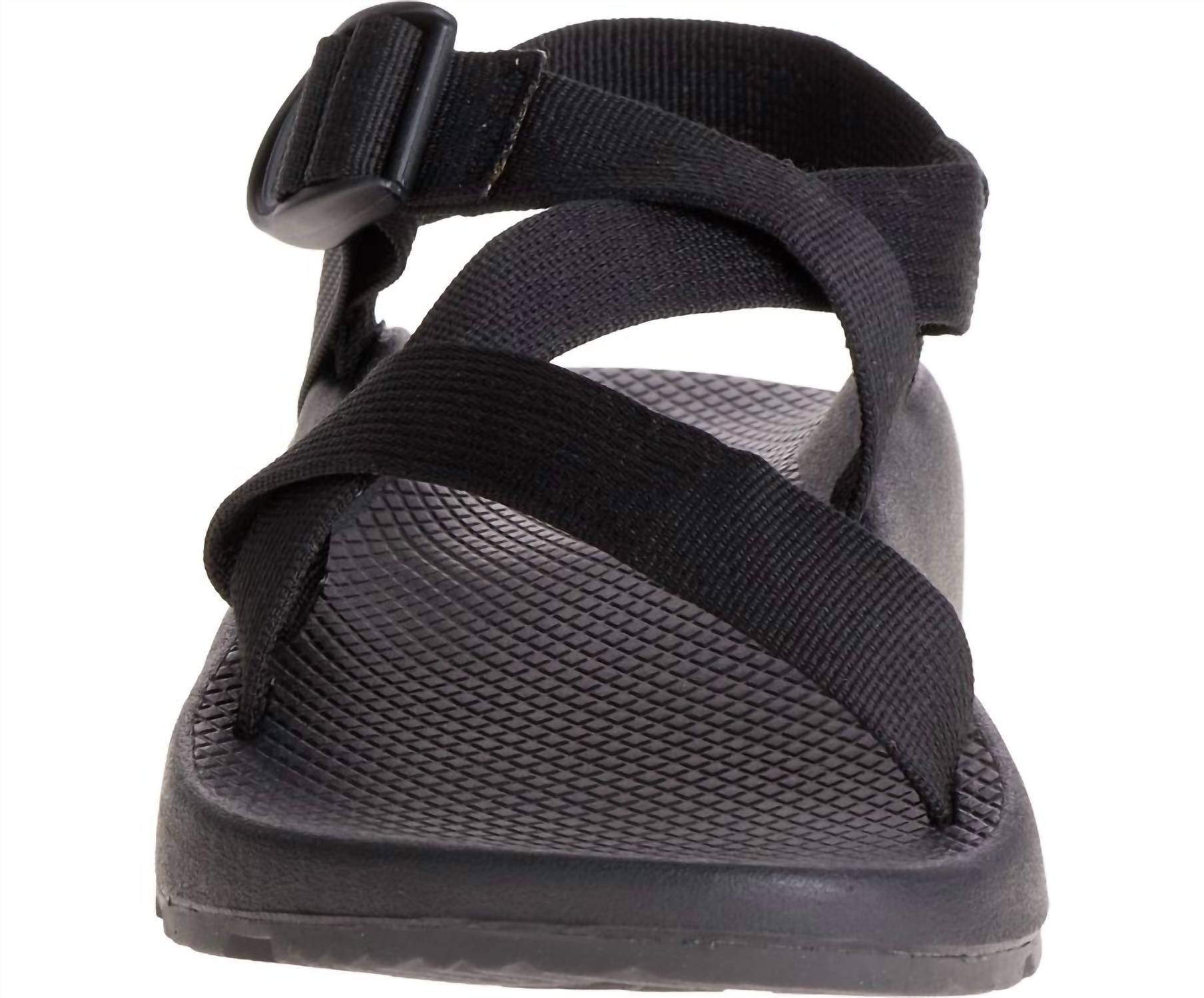 Introducing the Chaco Men's Z1 Classic Sandal, a minimalist essential in sleek black designed for summer adventures. Crafted with a polyester jacquard webbing upper, this sandal offers customizable fit through adjustable straps and an injection-molded ladder lock buckle. It features a podiatrist-certified LUVSEAT™ PU midsole for superior comfort and a ChacoGrip™ rubber outsole with a 3.5mm lug depth for optimal traction. Perfect for vacation and holiday wear, this vegan-friendly sandal promises durability and style.