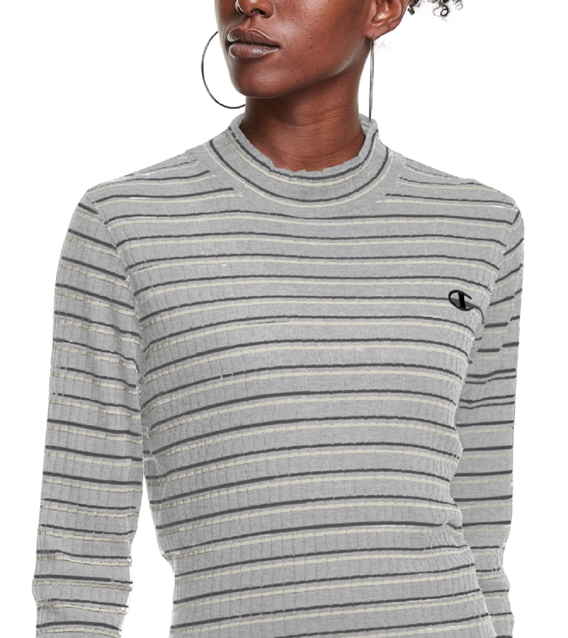 Champion Women's Campus Striped Mock Neck T-Shirt Gray Size Large