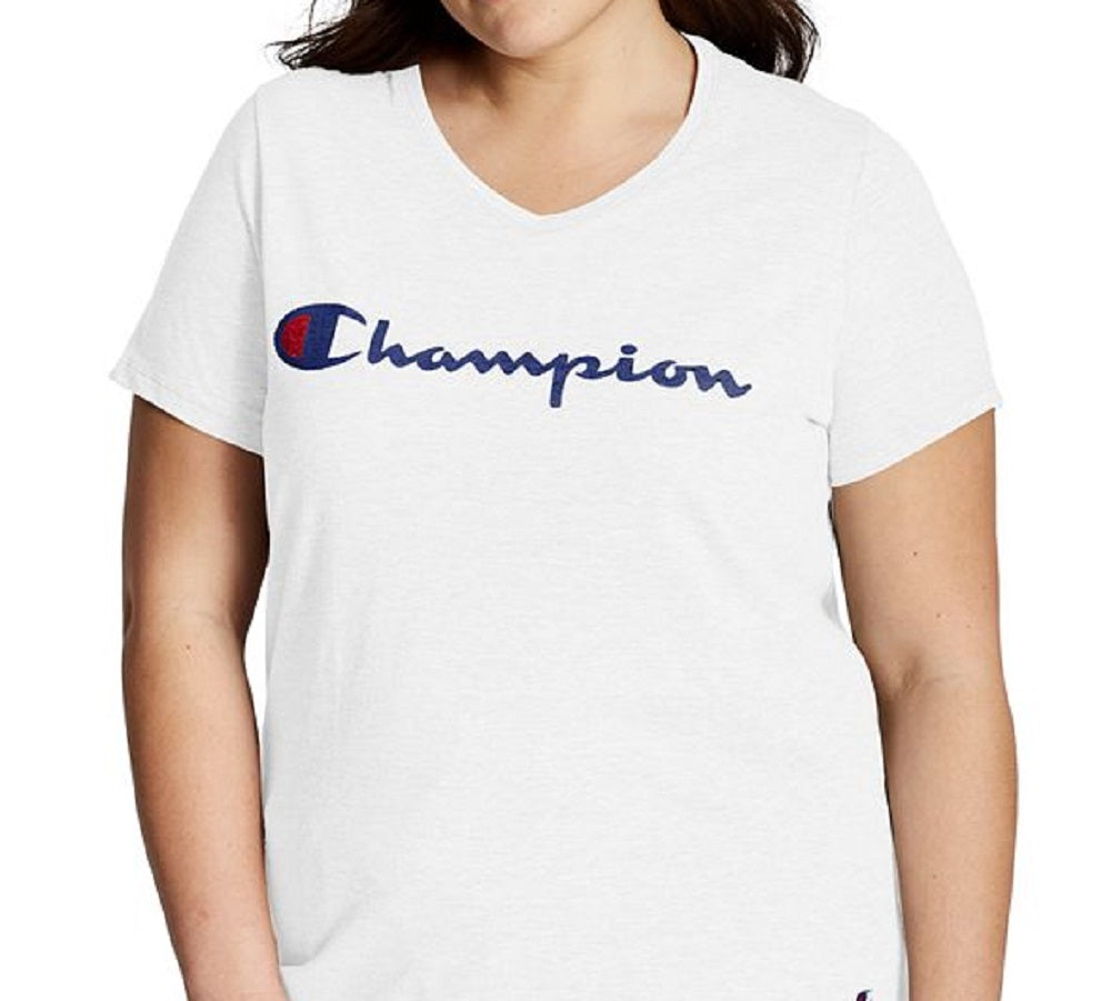 A classic look in a flattering modern length| this plus size T-shirt from Champion features a timeless logo and a stylish V-neckline.| V-neckline| Hits at hip| Cotton/polyester| Machine washable| Imported