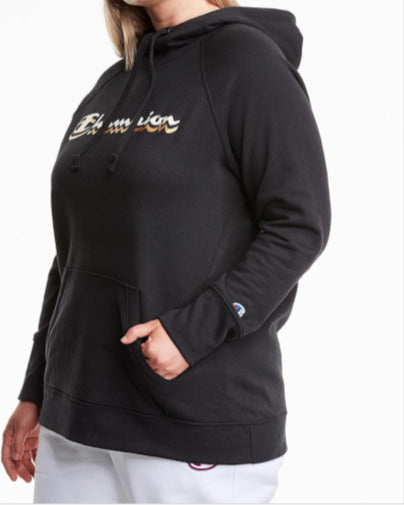 Champion Women's Powerblend Logo Hoodie Black Size 2X
