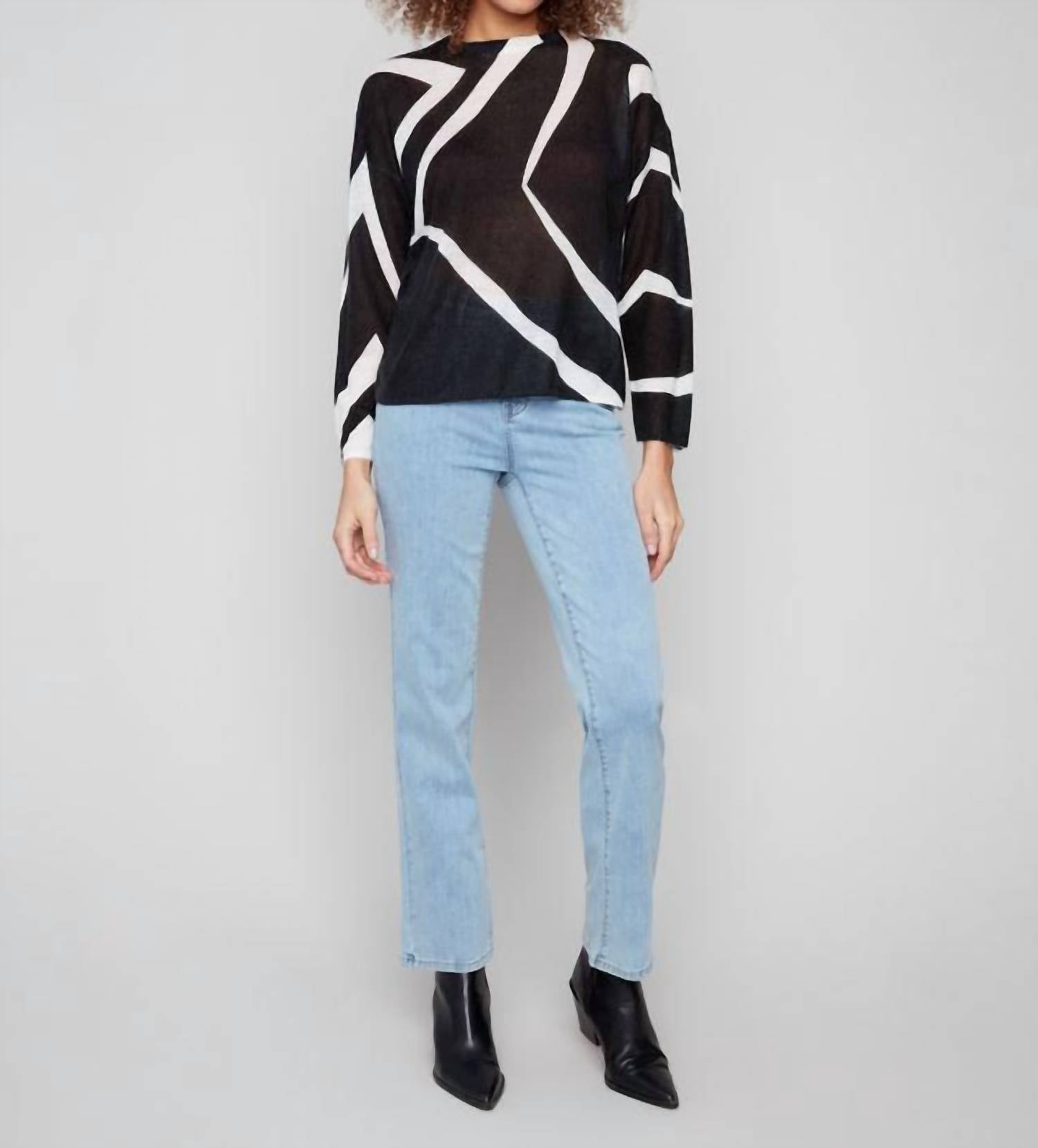 The ultimate go-to sweater, expertly crafted to provide the perfect combination of warmth and style. Its classic design and soft fabric make it a must-have addition to your wardrobe. The Mohair Style Sweater by Charlie B offers cozy comfort with its long sleeves and ultra-soft feel. Expertly crafted with 100% acrylic for a lightweight yet warm experience, it features a stylish black and white pattern and a classic crewneck. Designed with a pull-on closure, this minimalist piece from the Crew & Scoop Necks category is perfect for Thanksgiving dinner parties or casual fall outings. For best care, hand wash in cold water, lay flat to dry, and iron on a low setting if needed.
