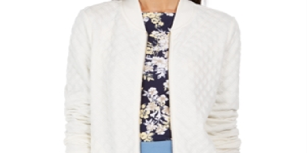 Charter Club Petite Textured Bomber Jacket White Size Petite Small