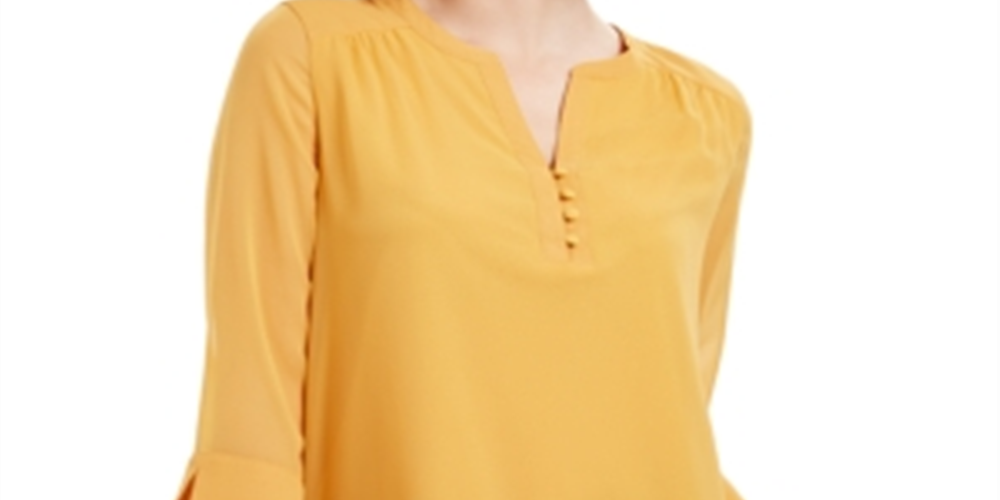 Charter Club Women's Sheer Sleeve Top Yellow Size XX-Large