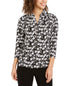 Charter Club Women's 3/4 Sleeve Printed Polo Top Black Size XX-Large