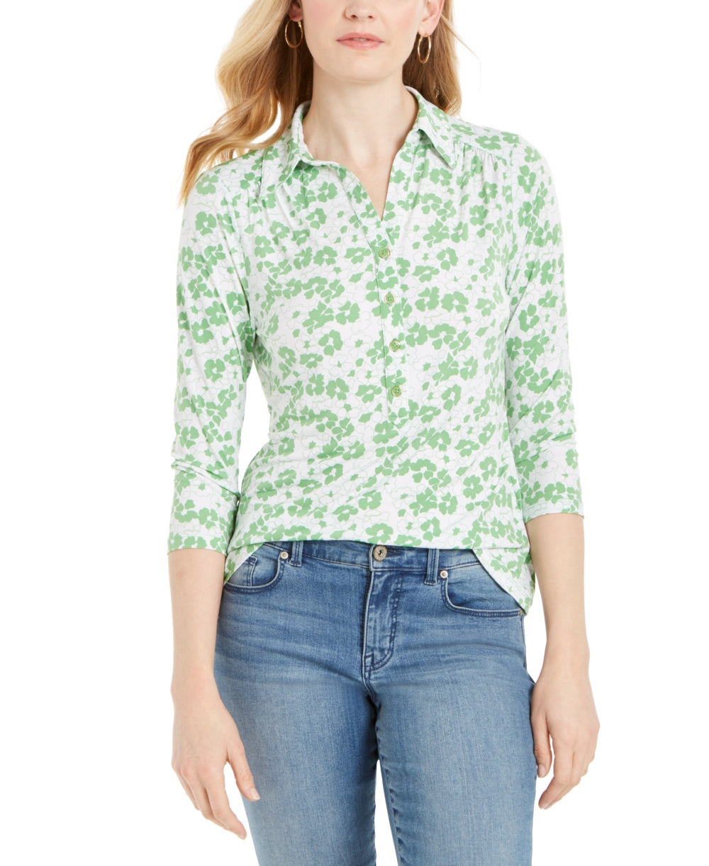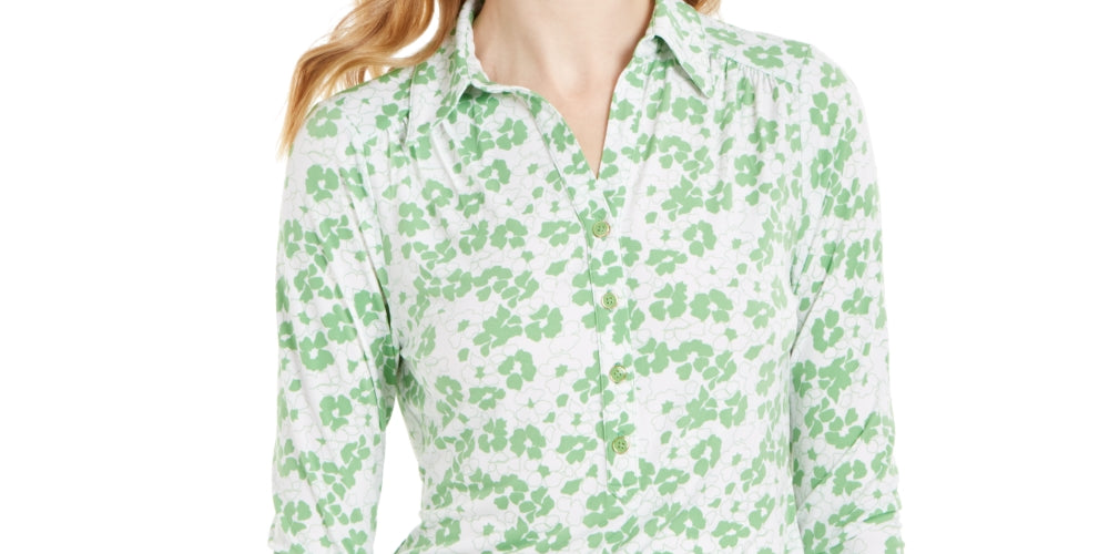 Charter Club Women's 3/4 Sleeve Printed Polo Top Green Size XX Large