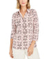 Charter Club Women's 3/4 Sleeve Printed Polo Top Pink Size X-Large