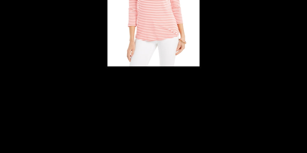 Charter Club Women's 3/4 Sleeve Striped Top Red Size Large