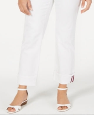 Charter Club Women's Belted Tummy Control Cuffed Jeans White Size 10