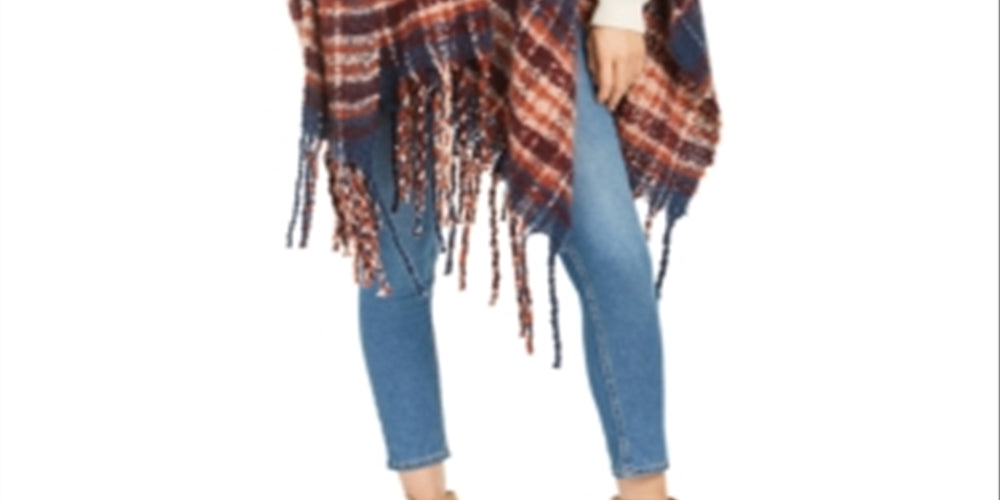 extra-long fringe brings the drama to this stylish plaid topper from charter club