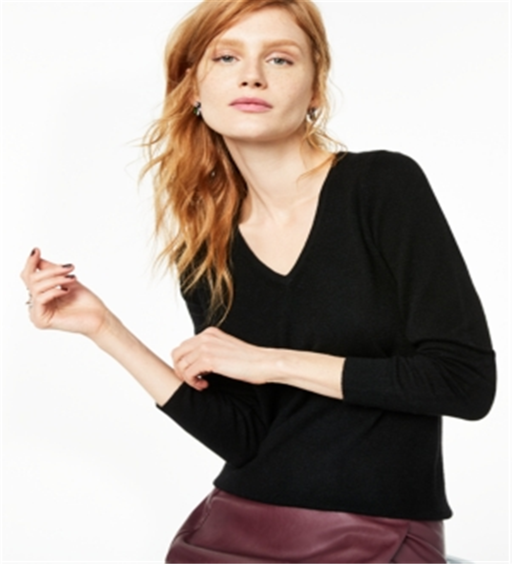 Charter Club Women's Cashmere Long Sleeve V Neck Sweater Black Size Petite Medium