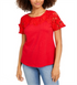 Charter Club Women's Cotton Lace Embellished T-Shirt Red Size Large